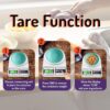 - TARE Functionality: Easily calculate the net weight of ingredients by subtracting empty bowl or the container weight. Touch the TARE button to reset the scale back to zero and weigh ingredients by adding it in to the same container.