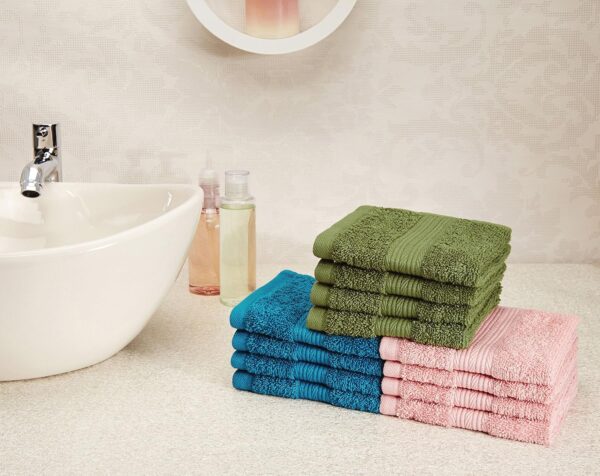 Pamper yourself with this premium 4-piece towel set from Solimo. This set includes 4 40cm x 60cm hand towels. Keep them neatly folded for visiting friends and relatives or use them daily to pamper yourself after a nice long bath. This Solimo towel set also makes a thoughtful gift for newlyweds and new home owners.